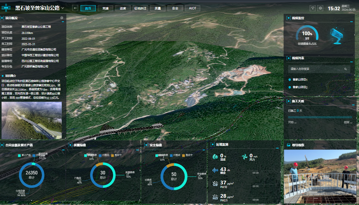 為強化風險管控,黑曾路項目部引入智慧信息化可視管理平臺,綜合運用BIM、GIS、物聯(lián)網(wǎng)、大數(shù)據(jù)、人工智能、無人機等先進技術,構建基于BIM+GIS+IOT+AI+PM的智慧工地平臺,實現(xiàn)進度、質量、安全等全方位智能化管控。