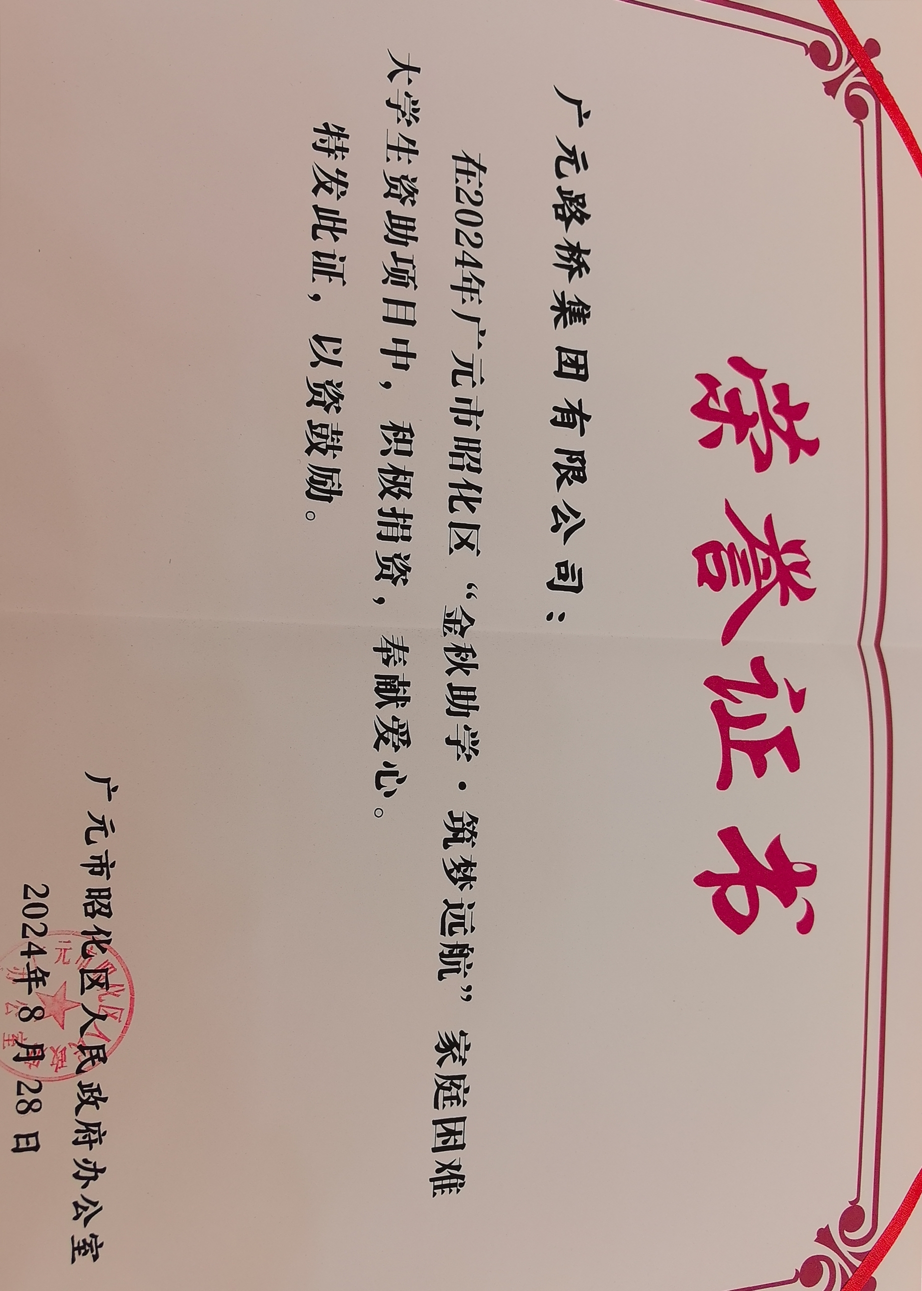 8月28日,昭化區舉行2024年“金秋助學·筑夢遠航”家庭困難大學生資助儀式,路橋集團作為資助企業參會并獲得表彰。