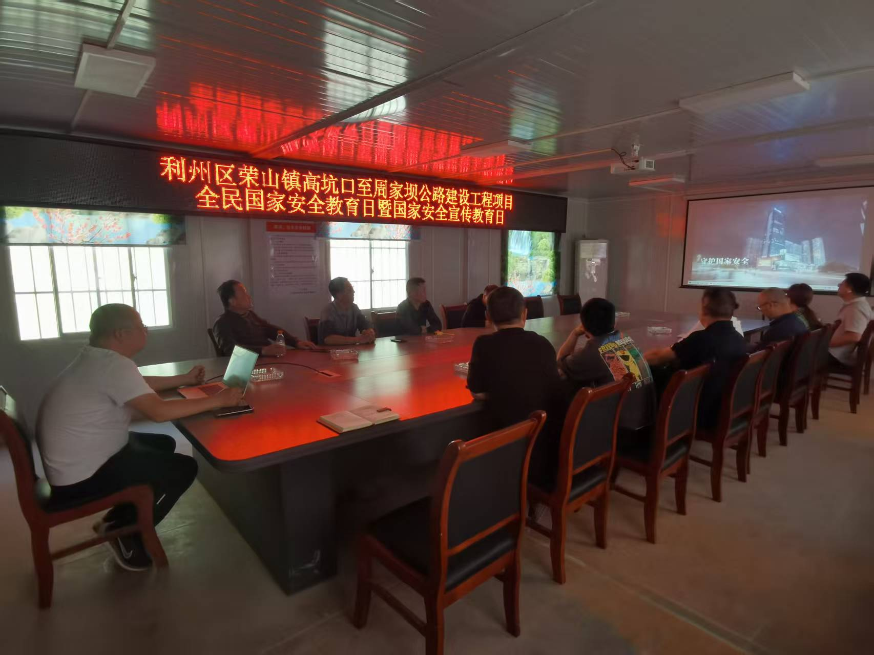 公司各部門干部職工、廣元市利州區(qū)榮山鎮(zhèn)高坑口至周家壩公路建設工程項目部人員觀看警示視頻,集中學習國家安全教育知識