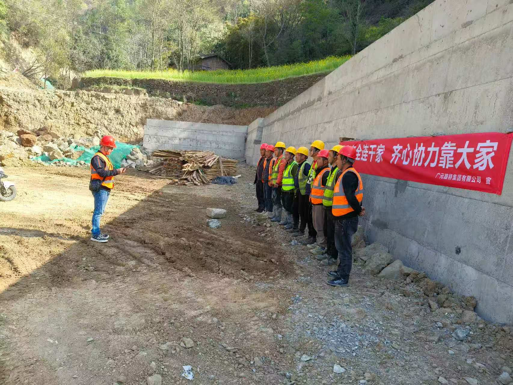 劍閣縣下寺至利州區(qū)月壩公路項目(三個石至硝洞埡)道路改建工程項目進行橫幅宣傳